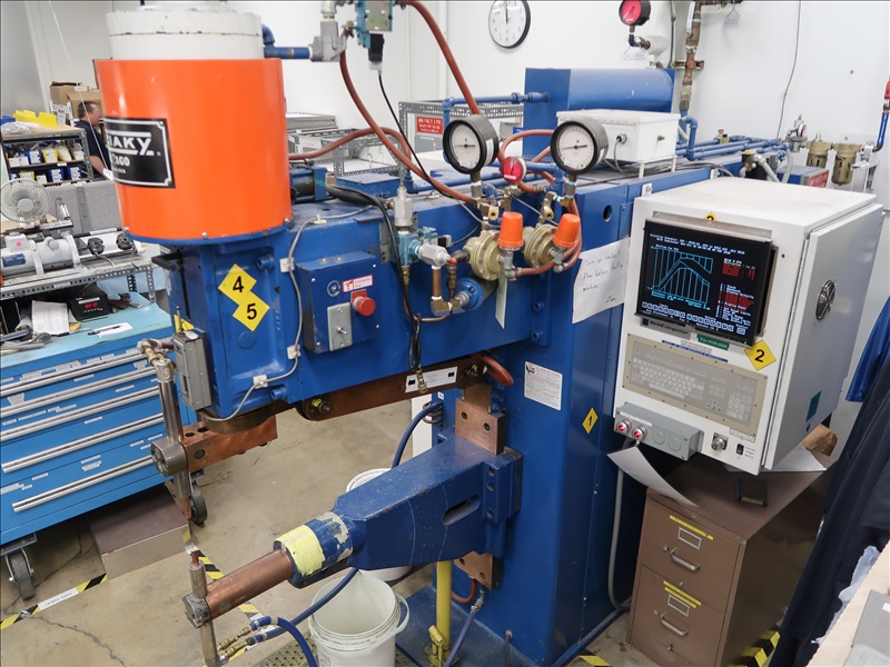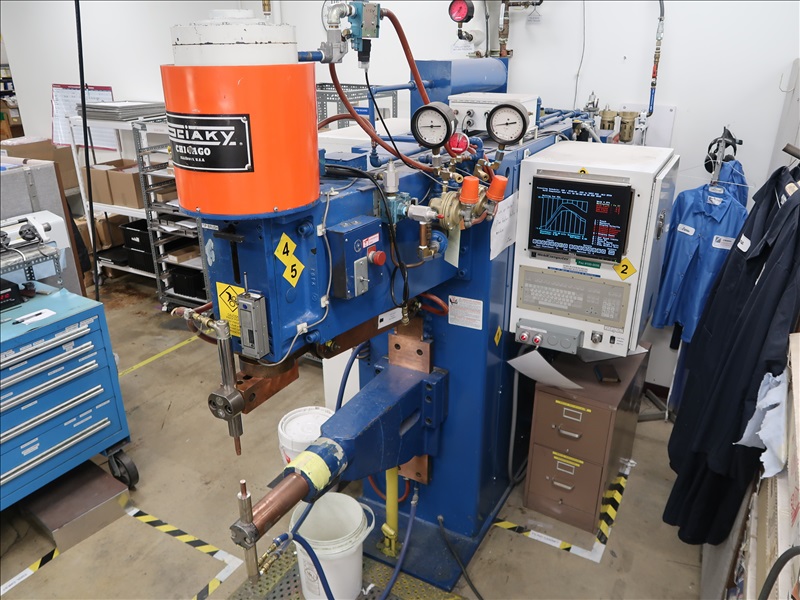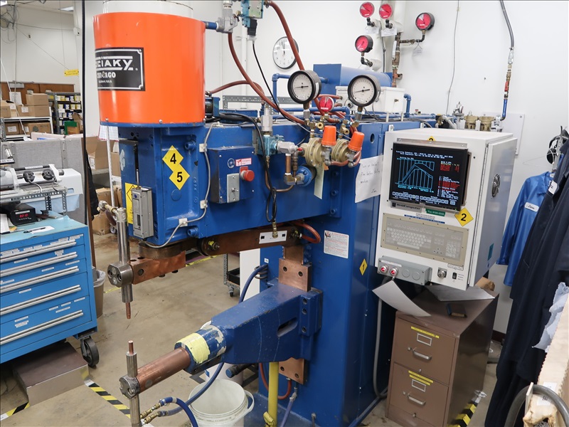 SPOT WELDER, W/WELD COMPUTER, 40" THROAT, 440V, 3-PHASE, S/N: 4695 W/SCHREIBER 200 AC EXTERNAL CHILLER