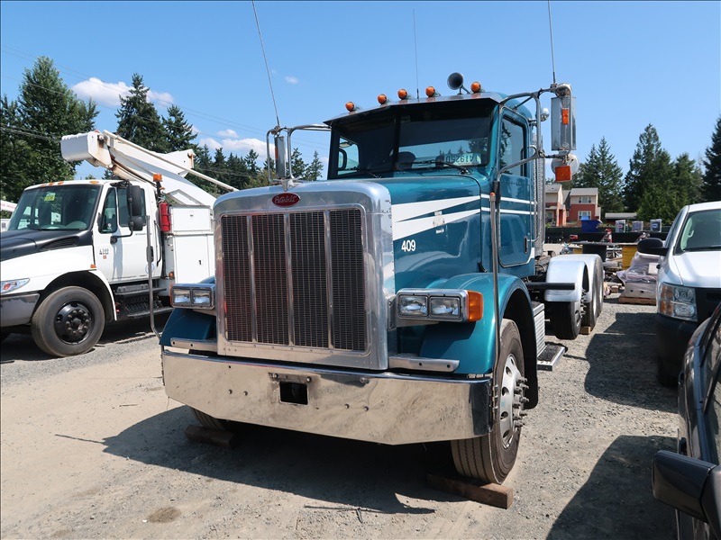 TRI/A DAY CAB, TRACTOR,435 HP, CAT C-15, AUTO,AIR SUSPENSION, 236" W/B,12,350 LB FRONT, 44,000 REARS,DROP AXLE, WET KIT, SLIDER (NEEDS WORK)