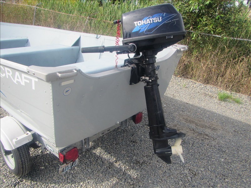 12' ALUMINUM BOAT W/TOHATSUMFS5BS 3H6 5 HP OUTBOARDMOTOR S/N: 069871XF W/2014KING S/A BOAT TRAILERS/N: 4XBBA1618EA012249