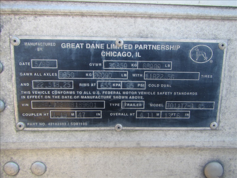 45' T/A REFRIGERATED VANTRAILER, THERMO KING SUPER IISR+, DIESEL REFER UNIT,LIFTGATE, TIRE SIZE 11R22.5HOUR METER READS: 18,195