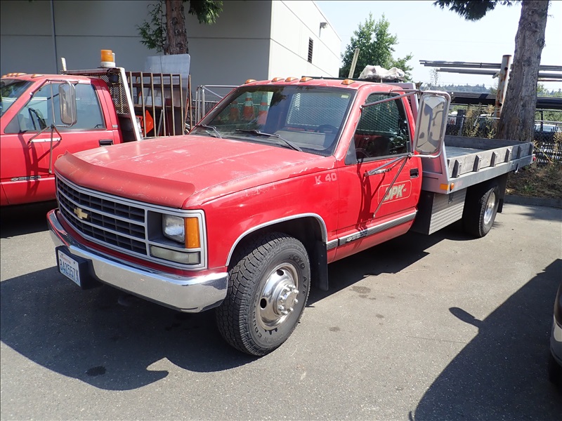 FLATBED UTILITY TRUCK, V8, AUTO, 12' BED, BOXES, AUX TANK