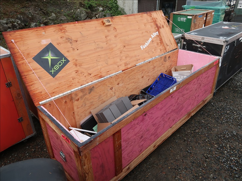 112"L X 32"D X 33"H STORAGE BOX ON CASTERS W/CONTENTS