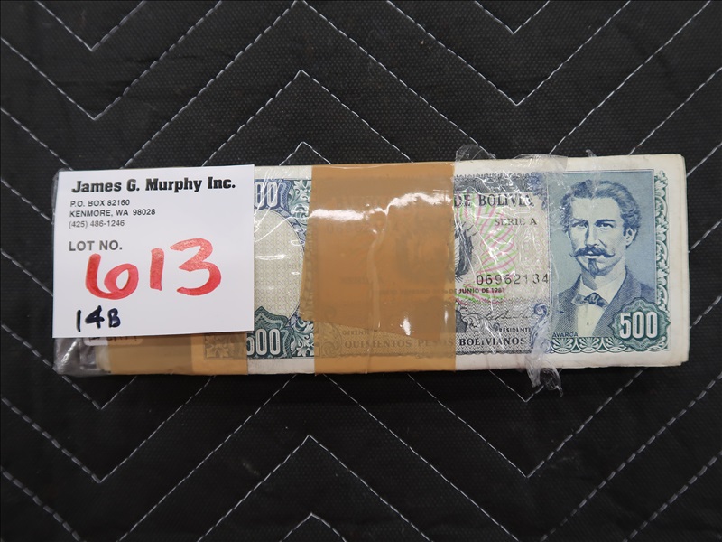LOT, (100) $500 PESO BOLIVIAN CURRENCY