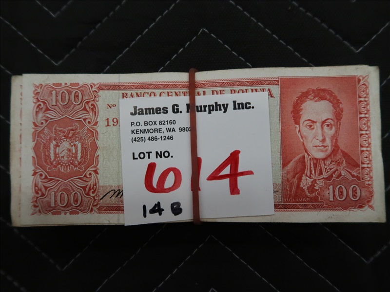 LOT, (100) 1962 $100 PESO BOLIVIAN CURRENCY