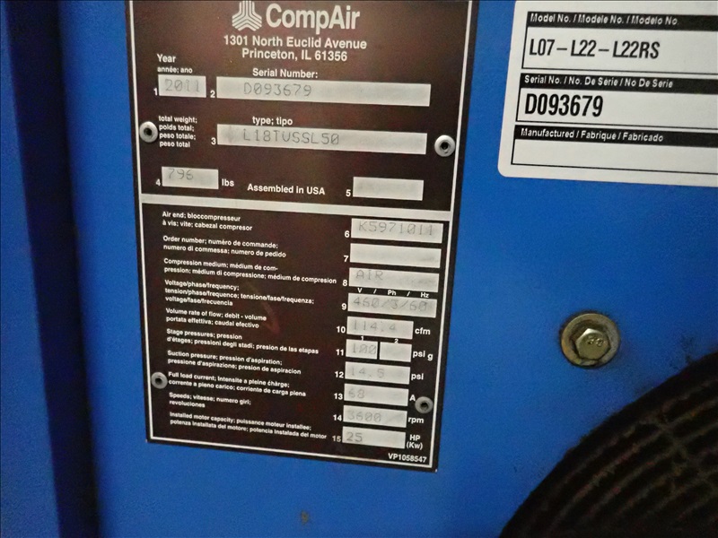 ROTARY SCREW AIR COMPRESSOR W/CNC 125 AIR DRYER & TANK