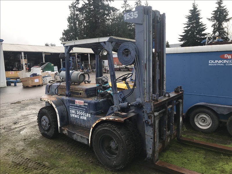 15,000 LB FORKLIFT, MANUAL TRANSMISSION, 8' FORKS, SIDE SHIFT, PROPANE