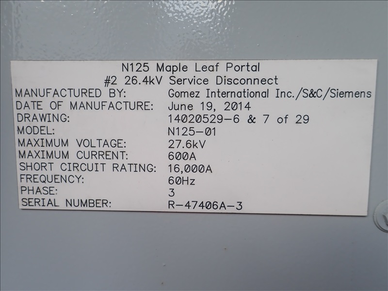 26.4 KV - 600 AMP, SERVICE DISCONNECT W/GE TRANSFORMER MANAGEMENT SYSTEM