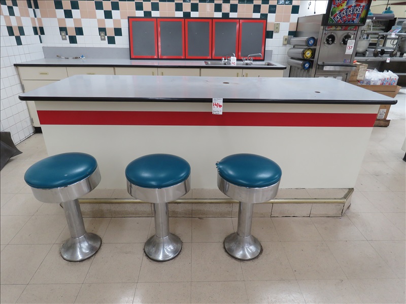 96" FREE STANDING COUNTER W/(3) STOOLS