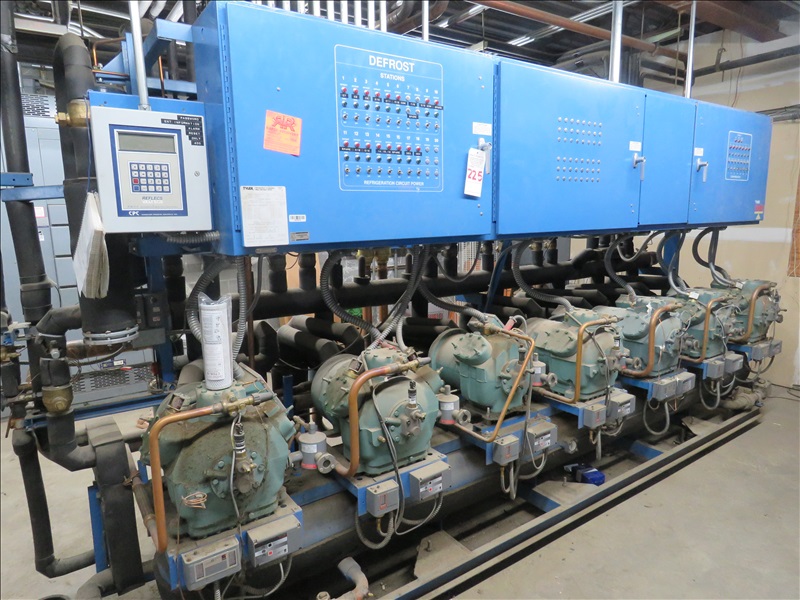 MEDIUM TEMP COMPRESSOR RACK W/(7) CARLYLE COMPRESSORS, R22, CPC REFRIGERATION & CASE CONTROLS ($250 REFUNDABLE DEPOSIT REQUIRED FOR WIRING NUTS)