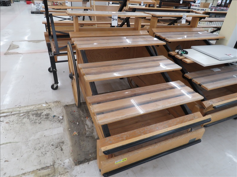 MULTI-TIERED WOOD DISPLAY RACK ON CASTERS
