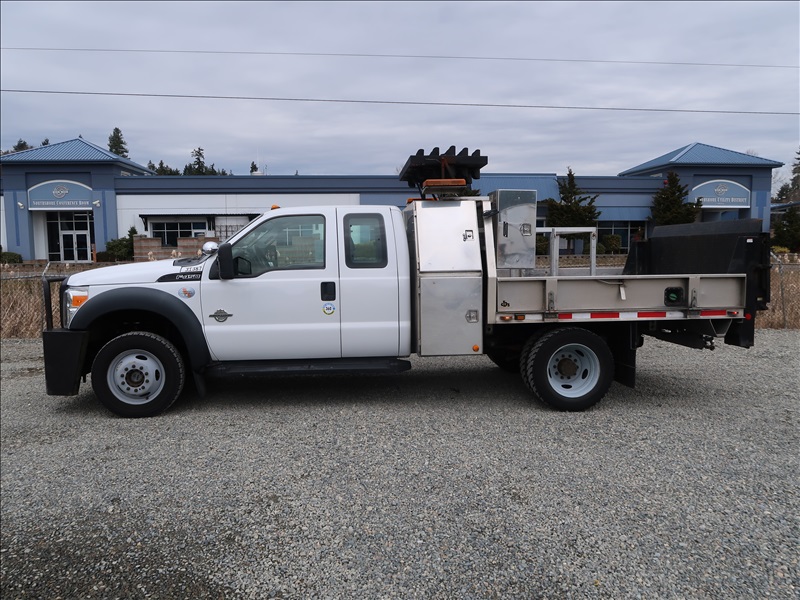 EXT CAB 8' FLATBED, POWER STROKE, AUTO, 4X4, LIFTGATE, DIRECTIONAL TRAFFIC BOARD, SIGN RACK (CHECK ENGINE LIGHT IS ON)