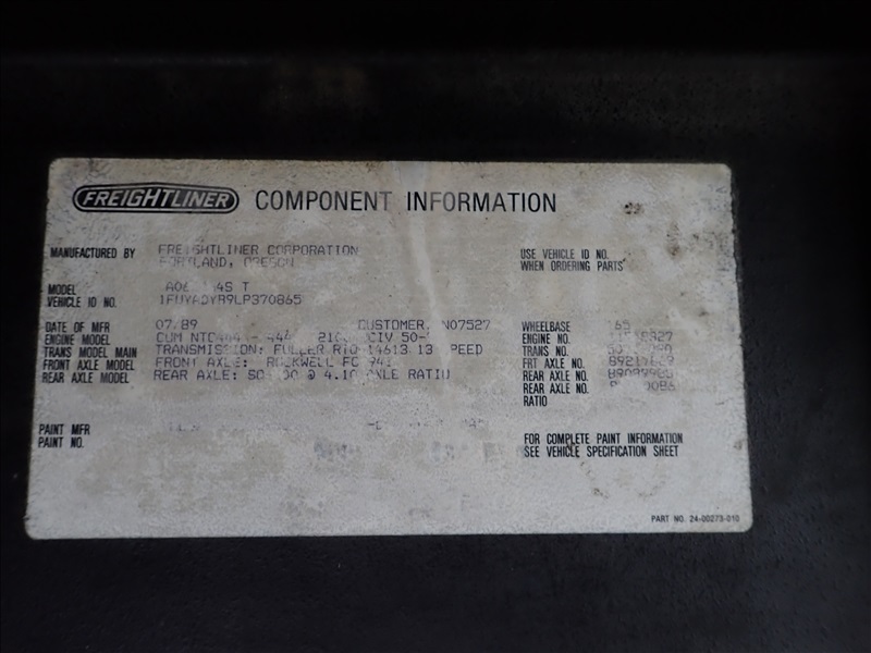 T/A COE TRUCK TRACTOR, CUMMINSW NTC444, RTO14616-13 SPD, SQ100 REARS W/4.10 RATIO, SPRING SUSPENSION, SLIDING FIFTH WHEEL, 165" WB