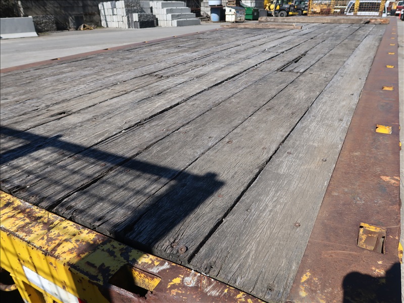 32' T/A FLATBED TRAILER, WOOD DECK, OUTSIDE RAIL