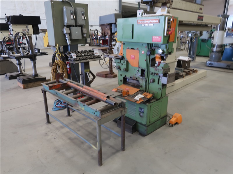 IRON WORKER, 88-TON PUNCH CAPACITY, 3/4"-1-1/4" PUNCH CAPACITY, 4" X 4" X 3/8" ANGLE, 1-1/4" ROUND BAR, 1-3/16" SQUARE BAR, 1/2" RECTANGULAR BAR, 14" X 5/8" FLAT BAR SHEAR CAPACITY DIES