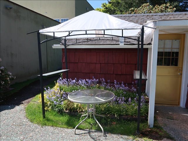 LOT, WROUGHT IRON CANOPY & OUTDOOR TABLE