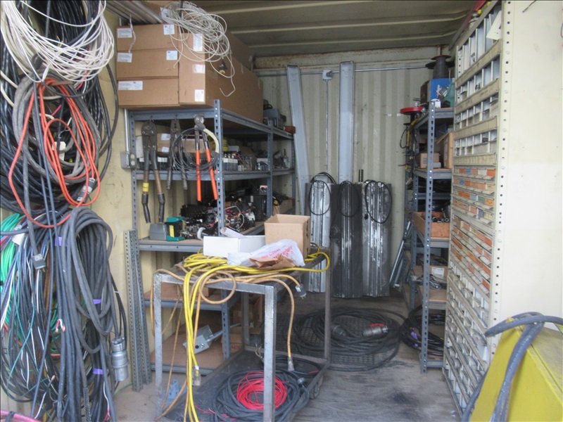 GROUP OF ELECTRICAL PARTS, RELAYS, CIRCUIT CORDS, SHELF, CART, WIRE & MISC