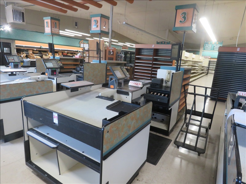 CASH REGISTER STAND TO INCLUDE: TOUCHSCREEN, MONITOR, SCANNER, CONVEYOR BELT, SCALE, CASH DRAWER & SLIP PRINTER