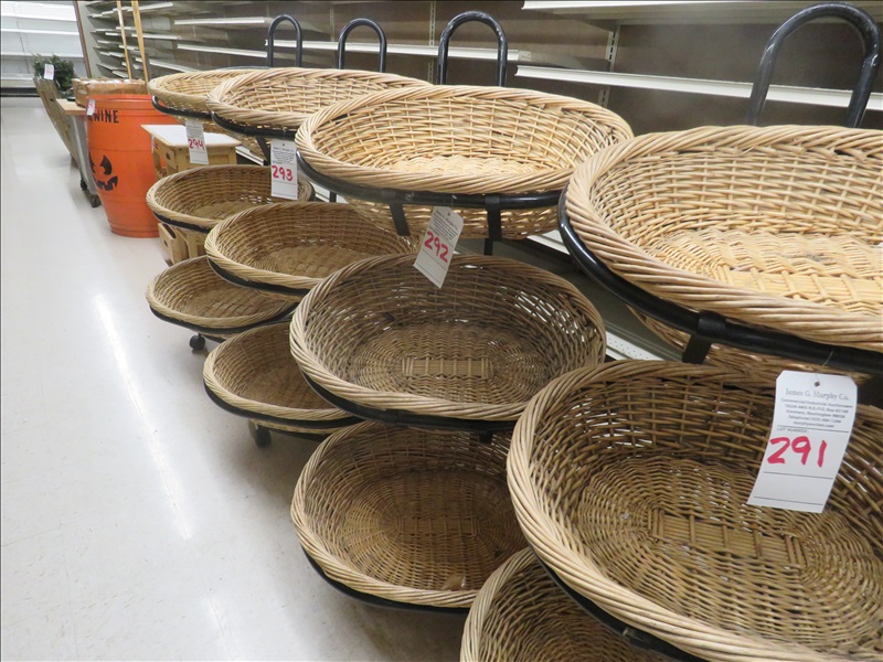 LOT, (3) WICKER BASKETS ON IRON STAND
