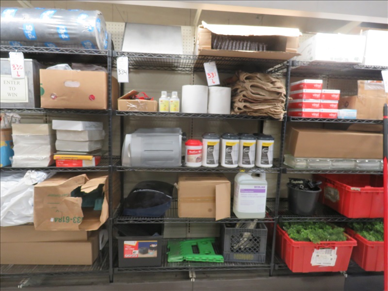 LOT, ASSORTED GROCERY STORE SUPPLIES IN THIS ROW (MUST BE PICKED UP BY 12 PM, THURSDAY JUNE 6TH)