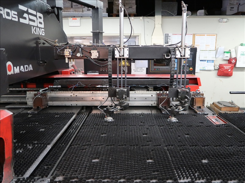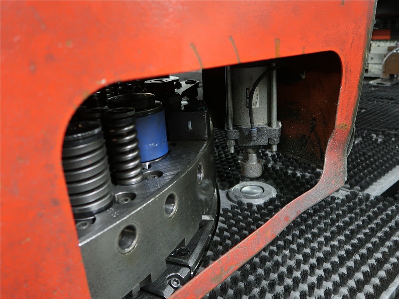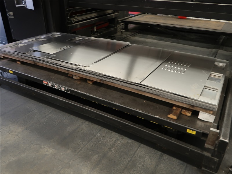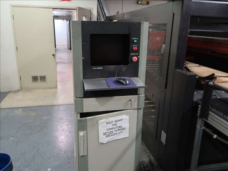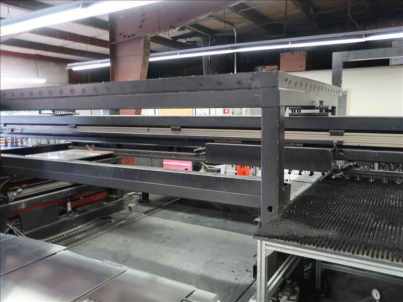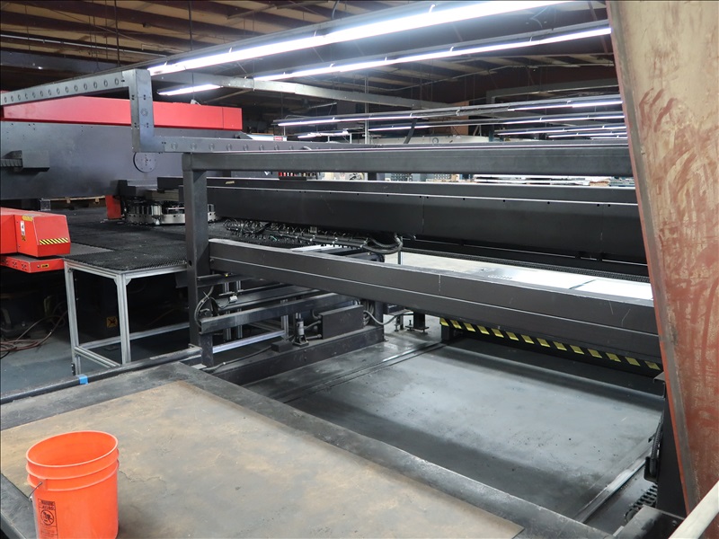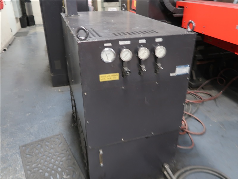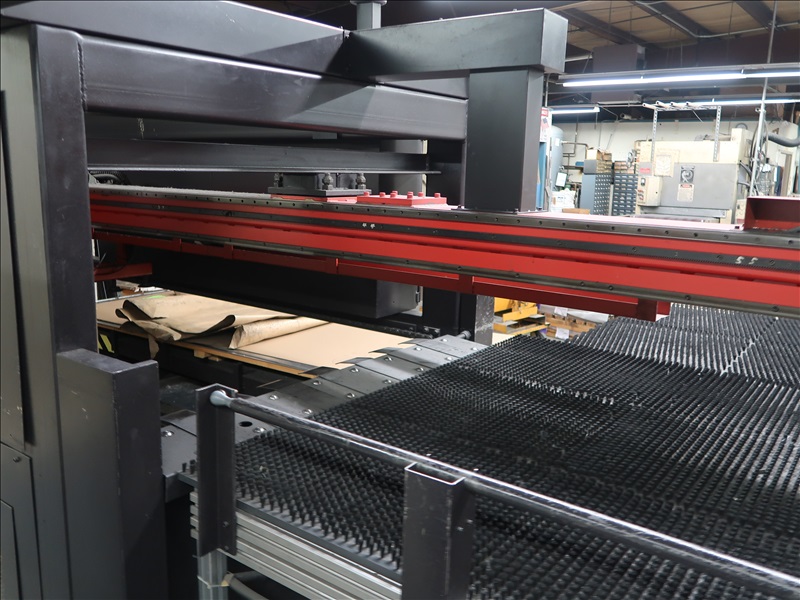 30-TON TURRET PUNCH, 58-PUNCH STATIONS, 25 KVA, AMADA 04PC POWER STATION CONTROLS, 200L HYDRAULIC PUMP STATION, SBC EX 5.5 CHILLER, 5' THROAT W/TABLE, 4'X10' SCISSOR LIFT INFEED TABLE W/VACUUM POSITIONER, (2) 4'X10' OUTFEED SCISSOR LIFT TABLES W/VACUUM POSITIONERS, 8' OUTFEED CHIP CONVEYORS, 3-PHASE
