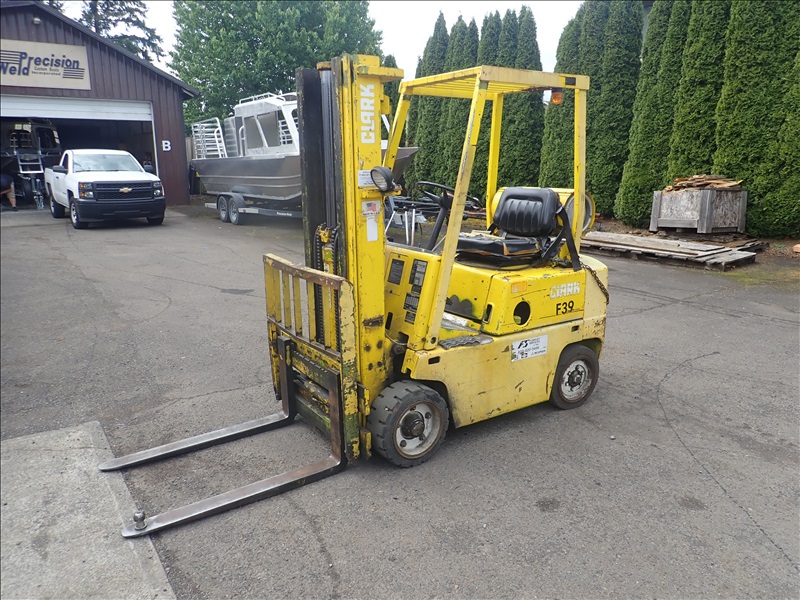3250 LB SOLID TIRE FORKLIFT, 3-STAGE MAST, SIDE SHIFT, PROPANE
