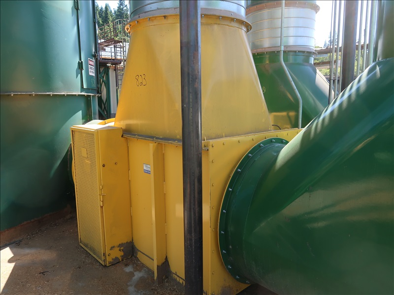 BAGHOUSE FILTER, S/N:169-97-18380, APPROX 66,000 CFM AT 8:1 CLOTH RATIO, 8,247 SQ FT CLOTH, APPROX 15' DIA X 35'H, MODEL RTF-23 46" FAN W/TOSHIBA 250 HP/1,770 RPM MOTOR, CLARKES HI-SPEED ABORT GATE, PIPING FROM APPROX 12' LONG NECK CYCLONE, 18" FAN W/25 HP MOTOR, SUTORBILT TYPE 10" X 20" BLOWER W/50 HP MOTOR, (2) STODDARD SILENCERS, PIPING & ELECTRICS (PLANER)