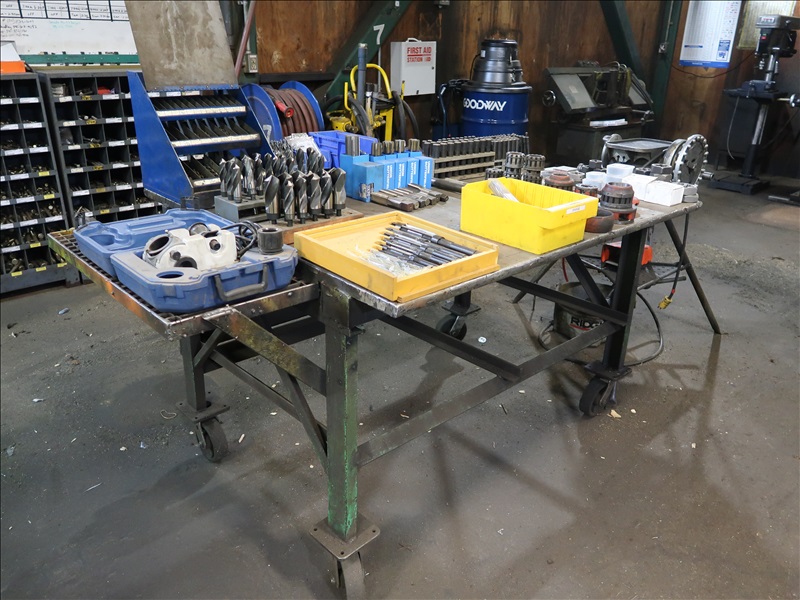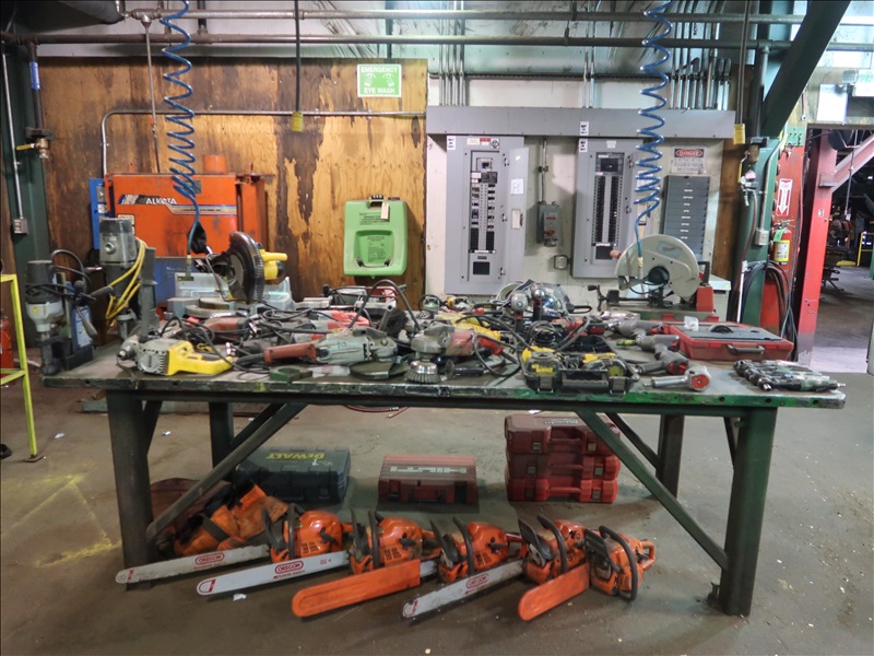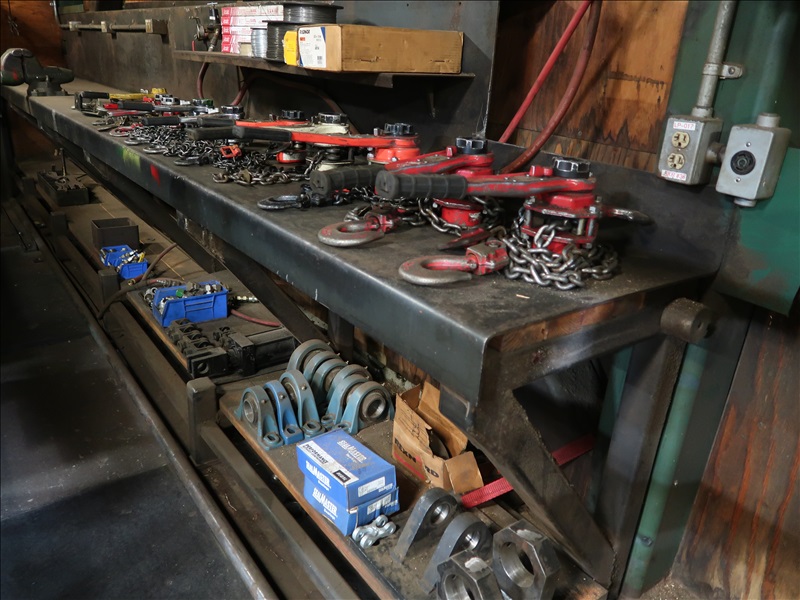 CLIMAX KEY MILL; (2) METAL BANDSAWS; MILL DRILL; (2) DRILL PRESSES; PIPE THREADER; SHOP PRESS; ALKOTA PARTS WASHER; (15) WELDERS; JOB BOX; (2) PALLET RACKS; HOSE CRIMPER & SAW; OIL TRANSFER CART; TANK MOUNTED COMPRESSORS; FANS; HOSE REELS; CHAIN HOISTS; COME-ALONGS; RIGGING; LADDERS; PUMPS; STEEL TABLE; FLAMMABLES CABINETS; HOSE REELS; GRINDERS; POWER & HAND TOOLS; UNUSED CHAIN IN BOXES; TEMPOSONIC VALVES & WANDS; BEARINGS; VALVES; HUBS; VALVES; BELTS; CYLINDERS; ROLL; SPROCKETS; UHMW; PIPE; STEEL STOCK; NUTS & BOLTS