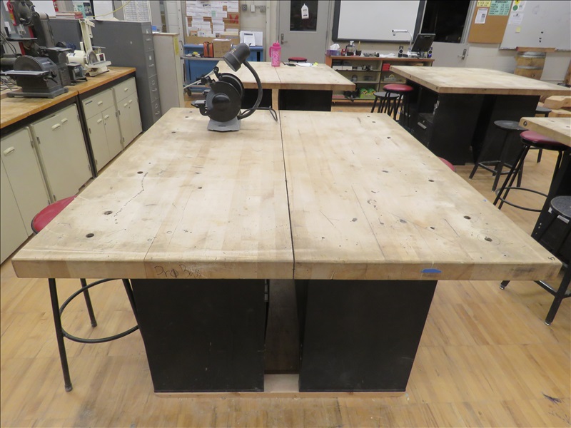 54" X 64" 2-SIDED BUTCHER BLOCK TOP WORK STATION (WOOD SHOP ROOM 320)