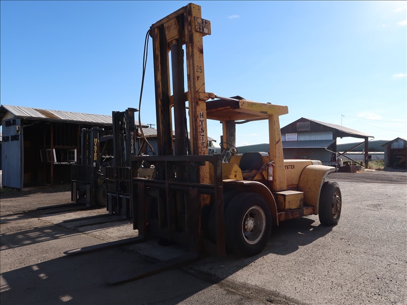 25,000 LB CAPACITY FORKLIFT, DIESEL ENGINE, 2-SPEED AUTO TRANSMISSION, APPROX 212" 2-STAGE MAST W/8"X52" FORKS, DUAL PNEUMATIC TIRES