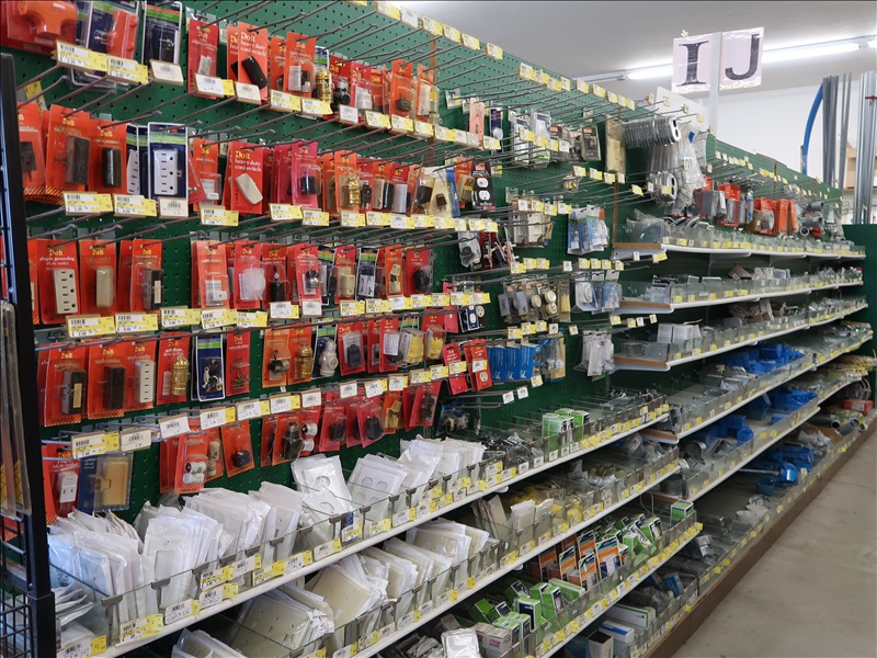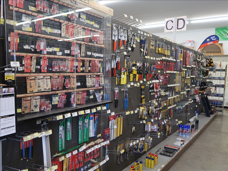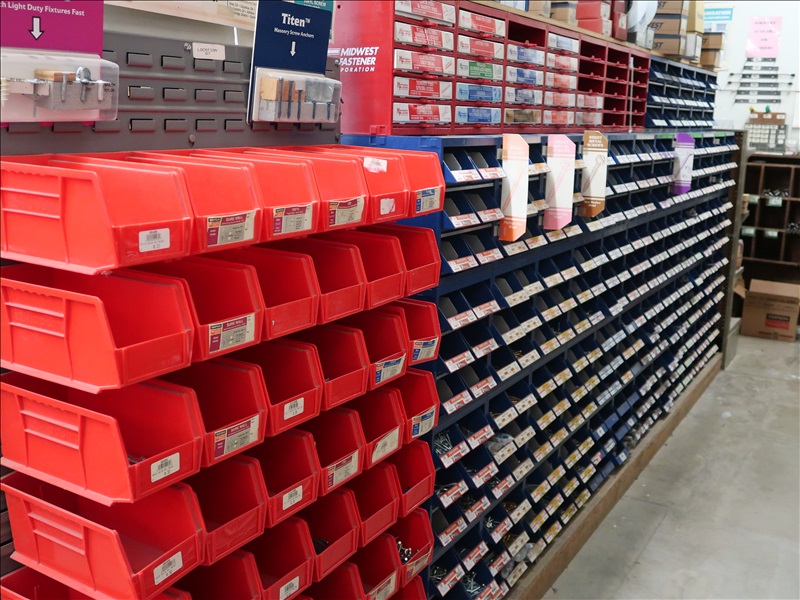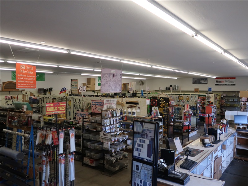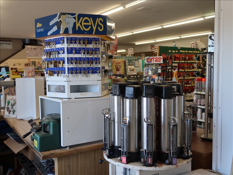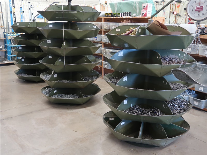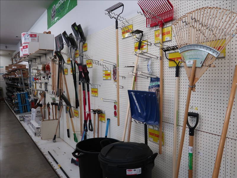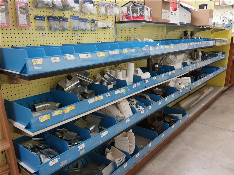 NORTHFIELD 36" VERTICAL TILT TABLE BANDSAW W/5 HP/900 RPM MOTOR, S/N:741-809F; MILWAUKEE 4'X8' PANEL SAW W/8" SAW; IRVINGTON 16" RADIAL ARM SAW; 16"X12' BELT CONVEYOR W/GEARHEAD MOTOR; (3) 10" CHOP SAWS; 1 HP DUST COLLECTOR; MAKITA LS1 12" COMPOUND MITER SAW; DELTA SHOPMASTER 10" MITER SAW; PROJECT PRO 10" MITER SAW; MILWAUKEE 12 AMP SAWZALL; DEWALT DWE5010 1/2" HAMMER DRILL (UNUSED IN BOX); (2) WERNER 8' FIBERGLASS STEP LADDERS; HONEYWELL I-CLASS MARK II LABEL PRINTER; PERFORMANCE 040 SERIES KEY MACHINE; HARBIL 12-STATION PAINT COLORANT DISPENSER; HARBIL G8 HIGH SPEED PAINT MIXER; HARBIL 5G-HD MIXER; COLOR RESOURCES MIXER; (1) 6-TRAY & (2) 5-TRAY ROTARY PARTS BINS; BOLT BINS; NUMEROUS SMALL WOOD BUILDINGS
