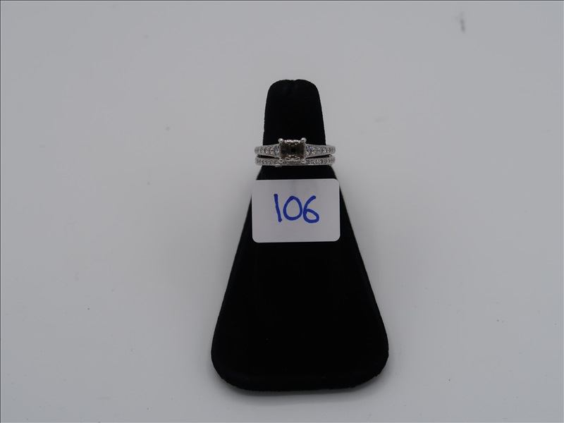 18K WHITE GOLD RITANI-DESIGN WEDDING SET RING SETTING WITH NO CENTER STONE, 1ST BAND WITH 26 ROUND DIAMOND RING ; & 2ND BAND WITH NO CENTER STONE, PRONG+BEZEL, 32 ROUND DIAMONDS (DIAMONDS TESTED POSITIVE), RETAIL PRICE: $3800, GRAMS:7.6
