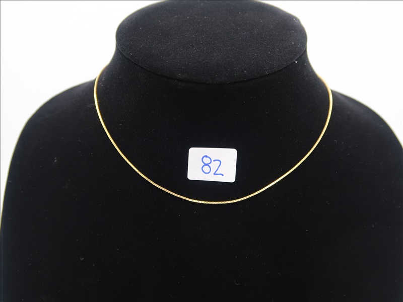 15" 18K YELLOW GOLD MIRROR BOX CHAIN, RETAIL PRICE: $535, GRAMS:2.9