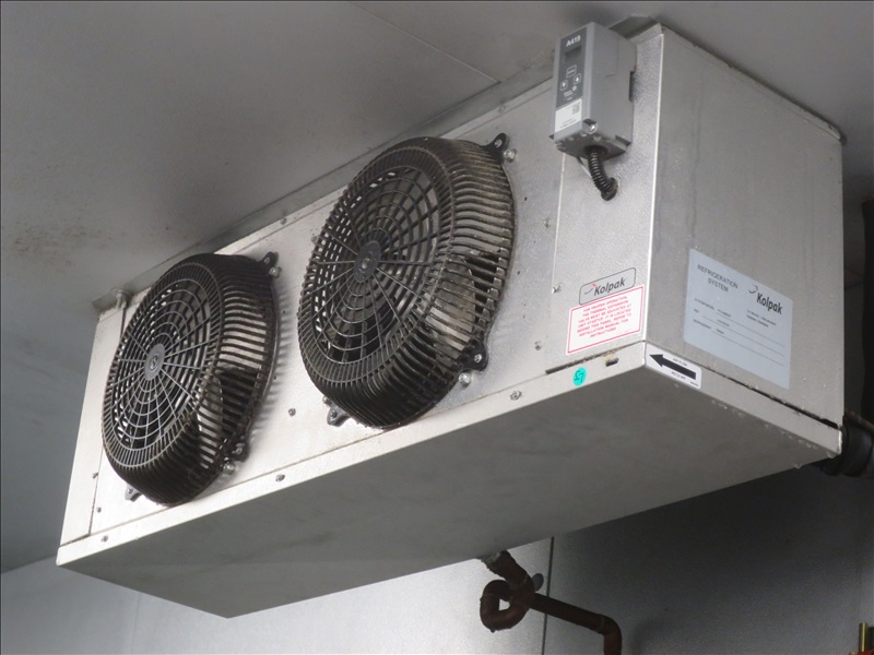 APPROX 9' X 28' 2-COMPARTMENT WALK-IN COOLER/FREEZER W/(2) KOLPAK 2-FAN CONDENSERS, LIGHTS, EXTERIOR DOOR, INTERIOR FREEZER DOOR, APPROX 9' X 8' FREEZER FLOOR, DIGITAL TEMPERATURE GAUGES (NO COMPRESSOR IS INCLUDED, THIS UNIT MUST BE REMOVED NO LATER THAN 4 PM, FRIDAY, SEPT 13TH)