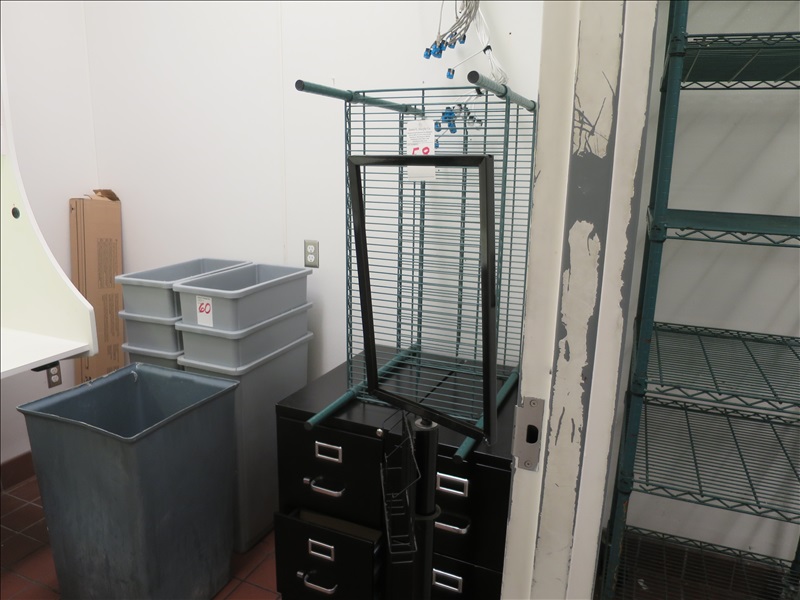 LOT, (2) 2-DRAWER FILE CABINETS & (1) 36" WIRE RACK & SIGN HOLDER