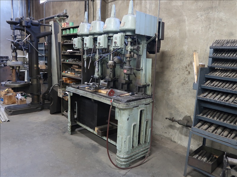 18" SWING , 4-SPINDLE DRILL PRESS W/T-SLOT BENCH