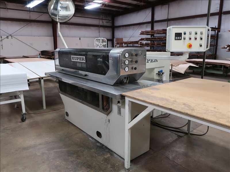 VENEER SPLICING MACHINES W/DROP TABLE, 48" THROAT, APPROX 15-60M/MIN FEED SPEEDS, APPROX 0.3-3.0MM VENEER THICKNESS, 460V, R200 SWING ARM TOUCH CONTROLS, PNEUMATIC CONTROLS ON GLUE HEAD & PRESSURE CONTROLS