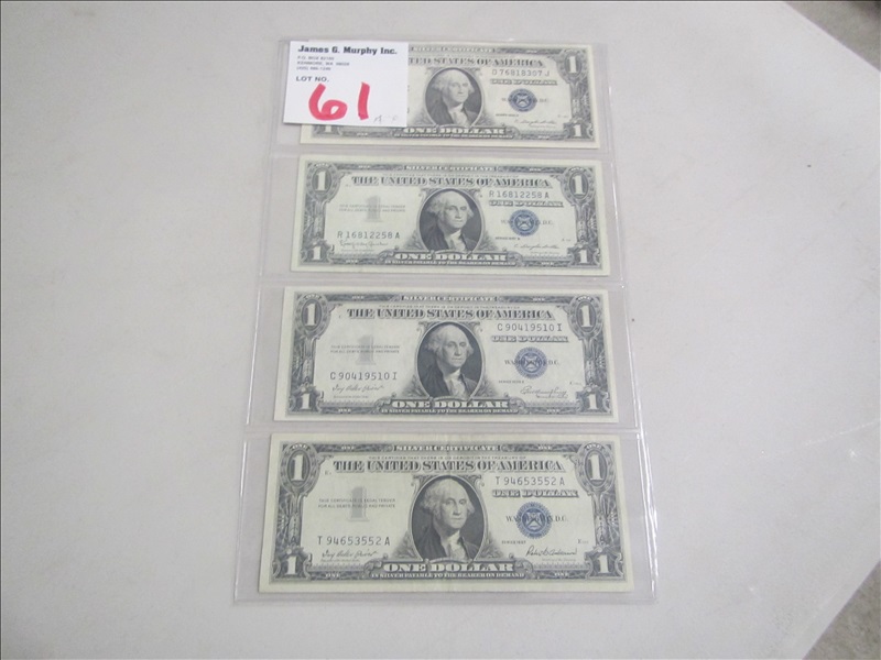 LOT, ASSORTED $1 SILVER CERTIFICATES (1) 1935-E, (1) 1935-G, (1) 1957 & (1) 1957-B
