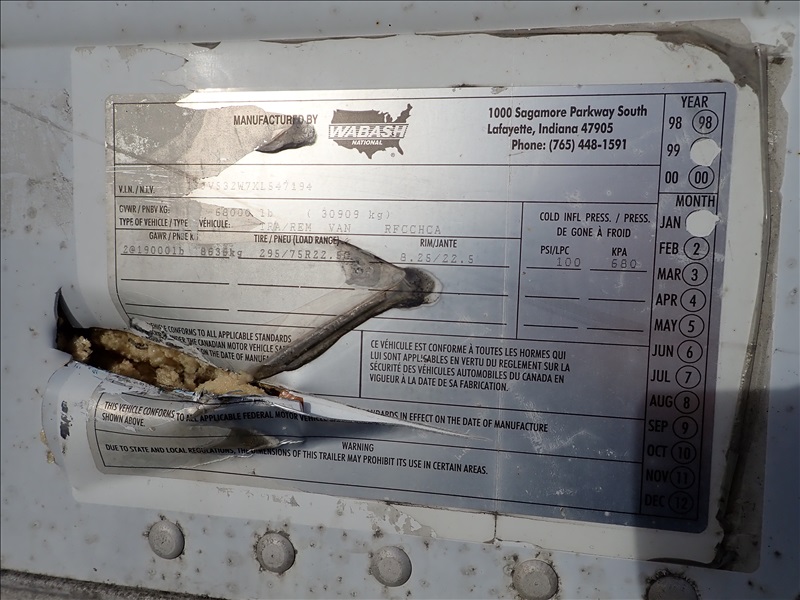 T/A 53' REFRIGERATED VANTRAILER, THERMO KING WHISPERSB-210 DIESEL REFER UNIT, A/B,SWING DOORS, 295/75R22.5