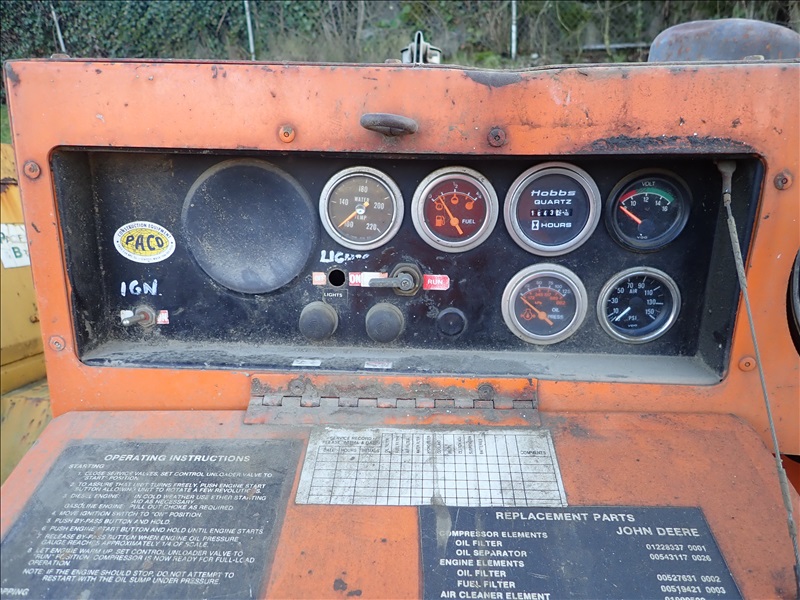 TRAILER MOUNTED 185 CFM AIRCOMPRESSOR, JOHN DEERE 4239 DFDIESEL
