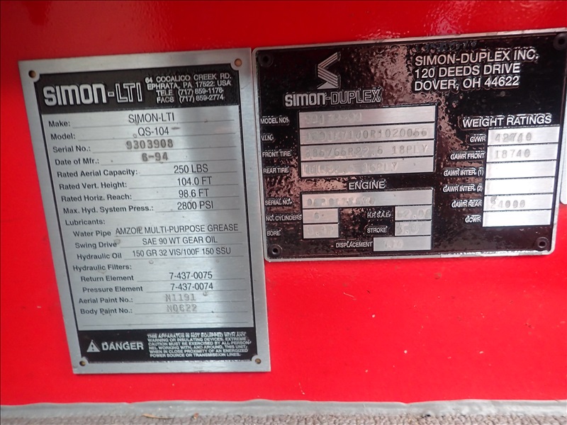 LADDER TRUCK, DUPLEX 104' AERIAL LADDER TILLER, 470 HP DETROIT SERIES 60, AUTO