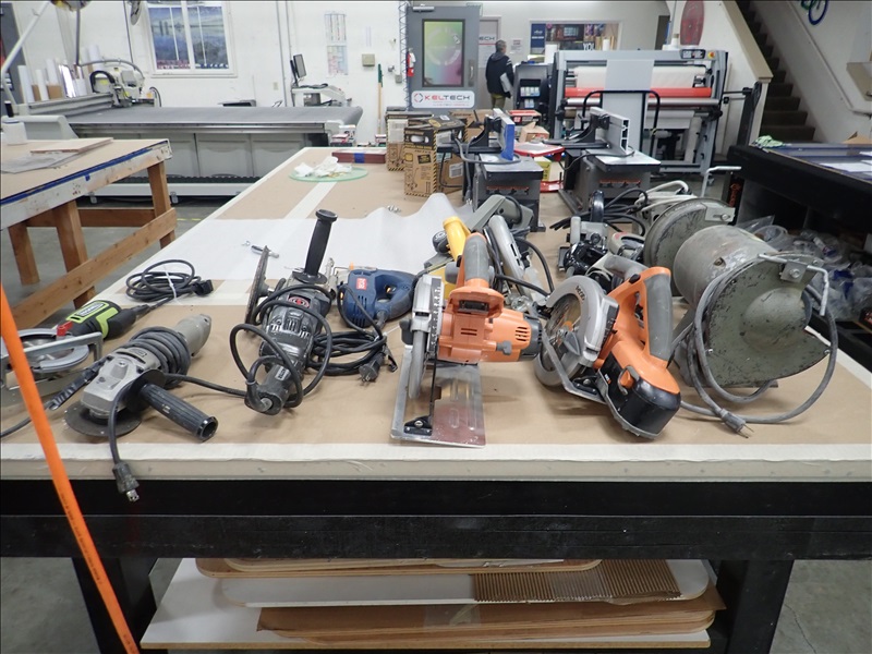 ROUTERS, POWER TOOLS, FLAMMABLE CABINETS, JOINTERS, SANDERS, TOOLBOXES & MISC. SHOP SUPPLIES