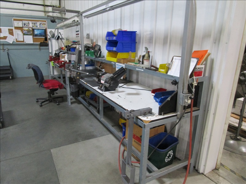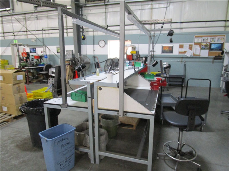 (4) ASSEMBLY TABLES W/LIGHT, CHAIRS & VISES