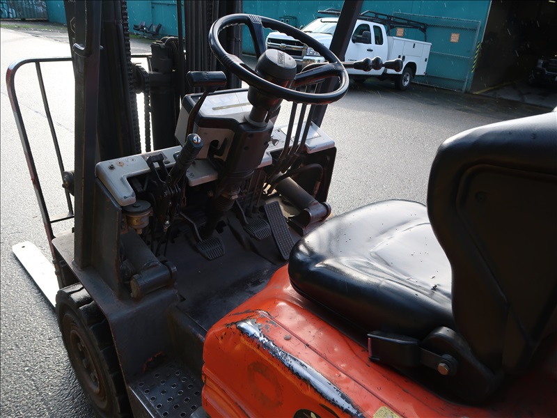 2,600 LB FORKLIFT, 3-STAGE MAST, SOLID TIRES, SIDE SHIFT, PROPANE