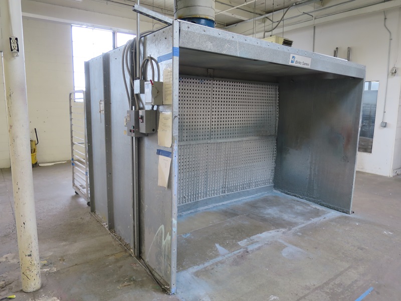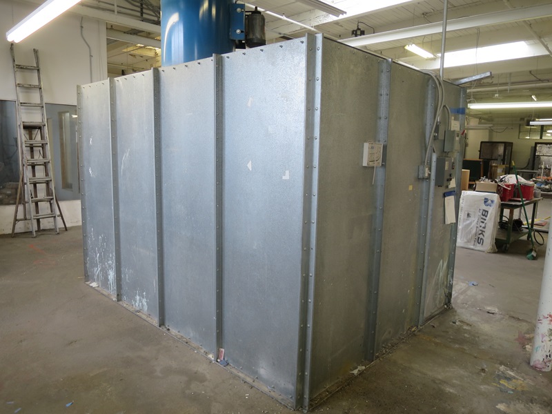 LIGHTED BACK-VENTED 3-SIDED PAINT BOOTH W/BLOWER, EXTERIOR DIMENSION: 7-1/2' D X 10' W X 7' H, INTERIOR WORK SPACE 4'8" D X 10' W X 6'5" H: 240V