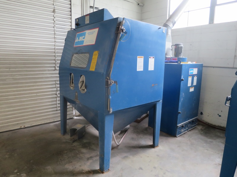 ABRASIVE BLAST CABINET W/FOOT CONTROL, A-BEC ADC-1210 MEDIA RECLAIM/EXHAUST UNIT, & ABRASIVE MEDIA MATERIAL TANK: 220V