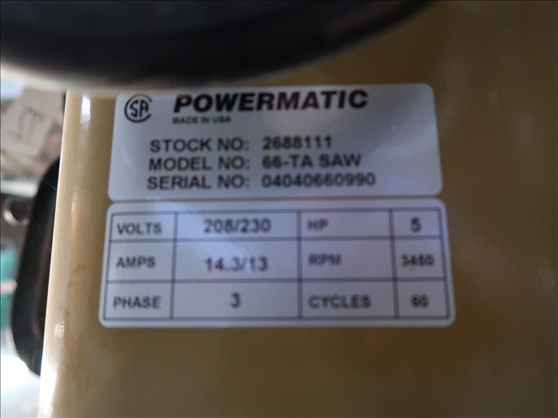 10" TILTING TABLE SAW W/5 HP/3,450 RPM MOTOR, 208/230V
