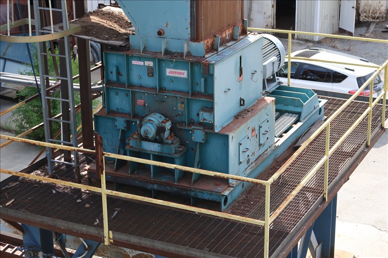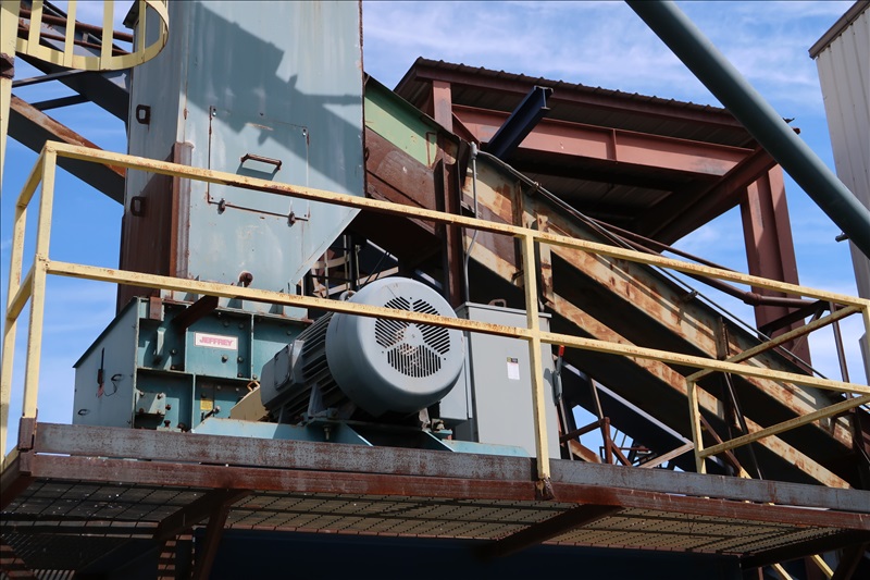 HAMMER HOG W/TOSHIBA 300 HP/1,185 RPM MOTOR, SS 9" ROTOR SHAFT W/40"X41" OVERALL ROTOR, 54"X45" OPENING, S/N:886828, APPROX 40' - 8"X15" BOX CHAIN W/FLITES INFEED CONVEYOR W/SKK DOUBLE REDUCTION GEARHEAD MOTOR, APPROX 50' - 6"X12" BOX CHAIN W/FLITES OUTFE