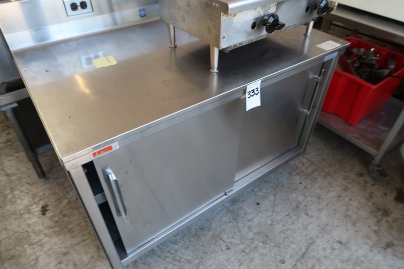 48" SS 2-DOOR TABLE W/BACKSPLASH & ELECTRICAL OUTLET