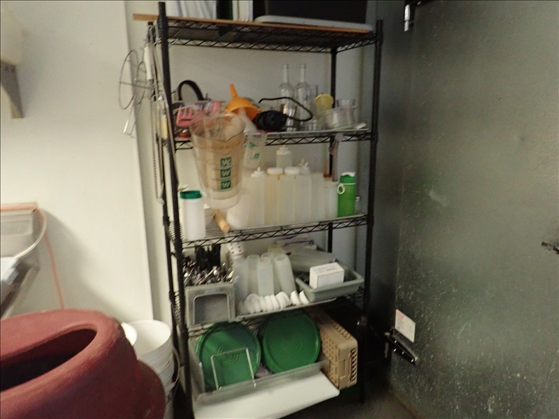 WIRE RACK W/ASSORTED KITCHEN SUPPLIES