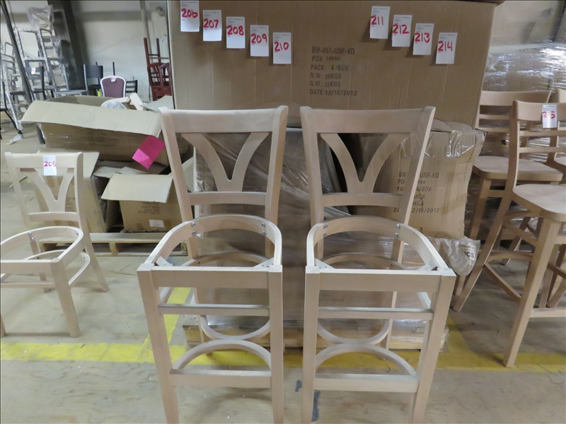 LOT, (8) WOOD BAR STOOLS (UNFINISHED & DOES NOT INCLUDE SEATS)